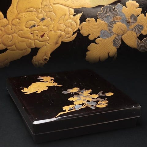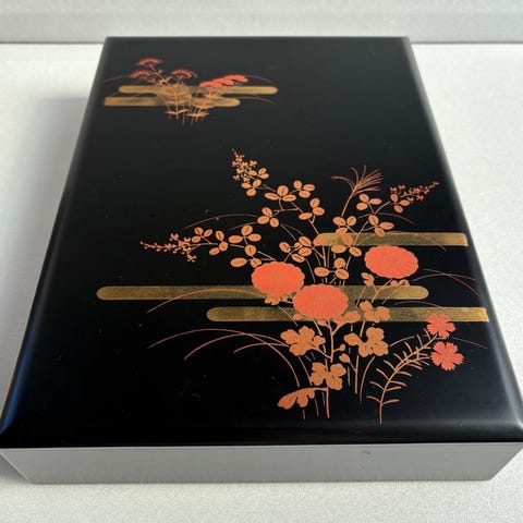 Et udsøgt lakkeret suzuribako 硯箱 (skriveboks) i rektangulær form.