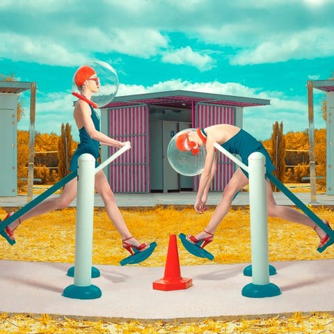 Billedet blev helt og holdent opnået i kameraet ved at bruge strober dækket af røde geler og en stor skumplade med cirkler skåret ud for at skabe de cirkulære pletter på modellen.