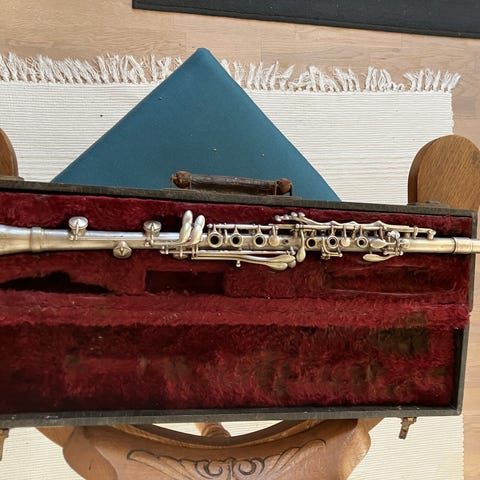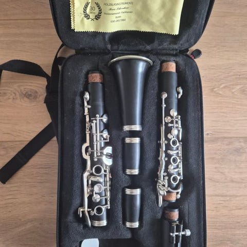 Klarinet Rampone Milano Brevettato, trækonstruktion med sølvfarvede mekanikker, højde 50 cm, i god stand. Klik på den blå "gå til varen" knap, for at købe eller byde på denne vare. Den samlede pris vil blive vist inden du afgiver dit bud.