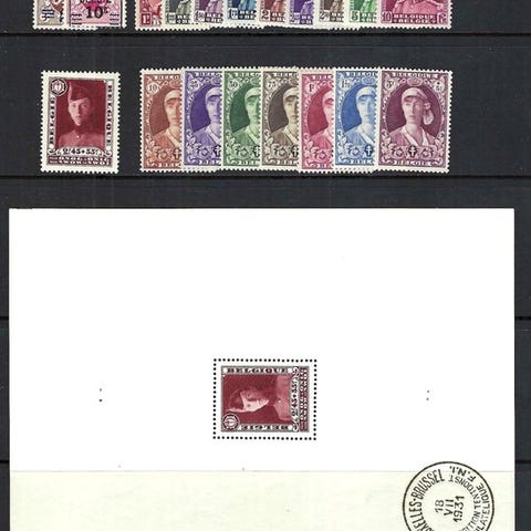 Belgien 1936 - Årene 1936/1939 fuldstændigt med blokke og frimærker ud af blo...