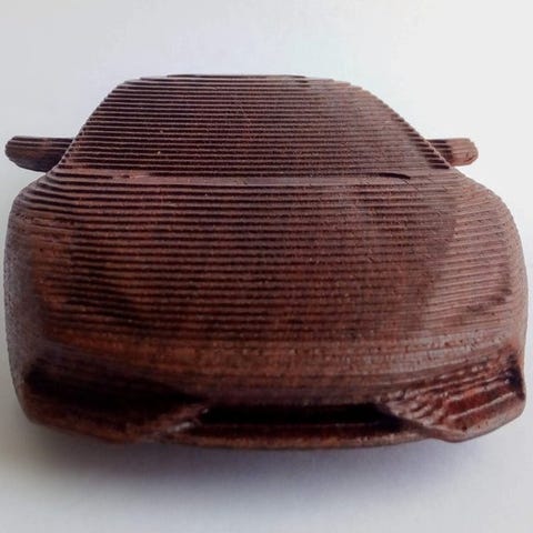 Karosseriet og hjulene er udskåret af en enkelt træblok, hvilket skaber en sammenhængende og harmonisk form.