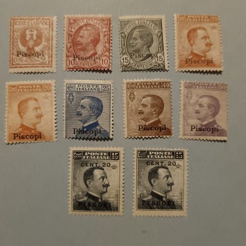 Med en meget høj katalogværdi på over 20.000 euro. Det skal bemærkes, at katalogpriserne kun er vejledende. Priserne varierer afhængigt af centreringen; dem der er særdeles velcentrerede, stiger prisen betydeligt, og det er netop denne lille detalje, der gør et frimærke unikt. Alle frimærker er fuldstændigt centreret og uden spor af limspor; den eneste serie med spor af lim er Effigie di Giuseppe Garibaldi vendt mod højre. Der findes serier, der er forsynet med certifikat fra meget anerkendte filatelistiske eksperter. Det oplyses, at alt, hvad I ser, får I; giv ikke bud, medmindre I har intention om at købe. Bemærk venligst, at alle frimærker er blevet