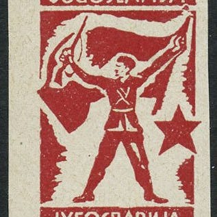1943 – Frimærker fra Jugoslavien oversstemplede med ny værdi i lire og påskriften "Deutsche Militär-Verwaltung Montenegro", komplet serie på ni nye værdier med intakt gummi