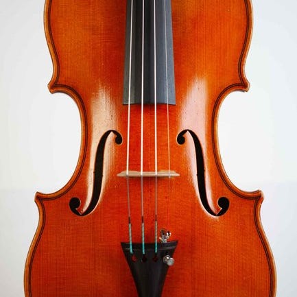 Til salg er en gammel, fin fuldstørrelses mesterviolin, lavet og mærket: "Max Schmelz, Passau 1961". Instrumentet er klar til spil med ingen revner, fineste bøg-sæt op og nye strenge. Tonen er kraftfuld, sød, rig, klar som en klokke og fokuseret med mange farver at arbejde med. Det er responsivt og ensartet i alle register. Violinens bagside er ét stykke lavet af smuk smal flammede ahorn med matchede sider, hals og scroll; toppen er ligeledes af høj kvalitet, af lige højrandet gran. Purlingen er omhyggeligt indlagt foran og bagpå. Den originale gyldne ravfarvede lak er i fremragende stand.