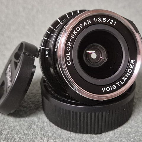 Pragtfuldt Voigtländer Color Skopar 50mm F2.2 til Leica M-fatning. Fungerer fuldt ud som den skal. Ingen ridser, støv eller skimmel. Inkluderer solblænder, beskyttelsesdæksler og den originale æske.