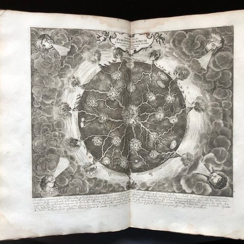 Gudenes rige, under den eneste sande Gud. I mange herlige fremvisninger af guddommelige beviser, naturlige spekulationer, politiske betænkeligheder; bemærkelsesværdige historier; dårlige poëzyer; sinnrige forestillinger; især hos elementerne og de vigtigste guder: i overensstemmelse med deres egne litterære betegnelser og betydninger samt reelle, pålidelige og grundige anvendelser ... betænkt og frembragt, af Johannes Aysma. ... forsynet med adskillige kostbare og konstellige kobberplader - Amsterdam, Timotheus ten Hoorn, 1686 - (8) 764 (60) pp - læderbind