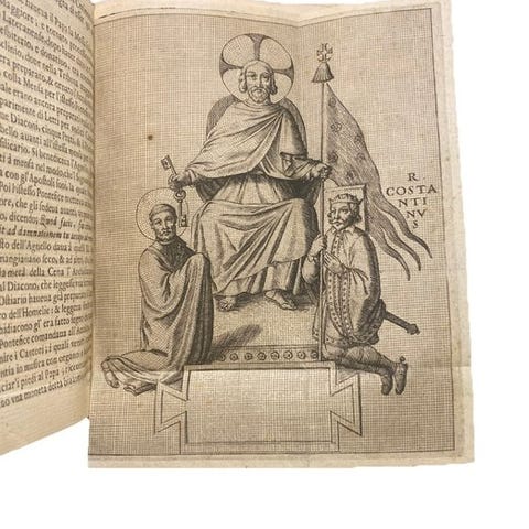 Gioseffo Petrucci præsenterer Prodomo apologetico alli studi Chircheriani, en første udgave (1677) på italiensk, udgivet af Janssonius van Waesberge, ca. 200 sider, pergamentbind, gyldent rygløb, træsnits-Titeldekoration, illustrationer og syv af ni sammenklappede plader, dedikeret til læreren Kircher. Klik på den blå "gå til varen" knap, for at købe eller byde på denne vare. Den samlede pris vil blive vist inden du afgiver dit bud.