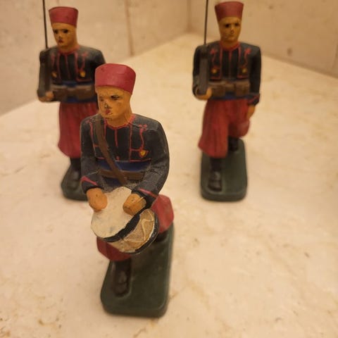 Smukke legetøjssoldater fra kolonitiden, håndmalede. Umærkede.