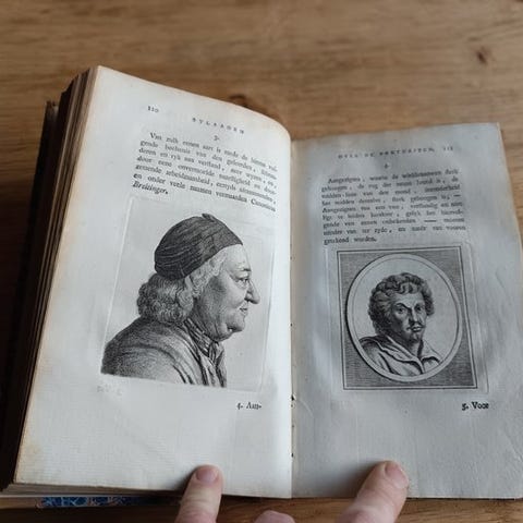 Oktav: 14 ikke-nummererede sider, 319, 288 sider, 7 ikke-nummererede sider: graveret frontispice (portræt), tilføjet graveret titelblad, over 2 afsnit plus indeks osv. plus 51 graverede plader.