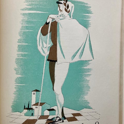 Illustreret værk med 45 farvekompositioner af Jean Gradassi, hvoraf én er en dobbeltplade, 29 uden tekst, 5 frontispicer og 10