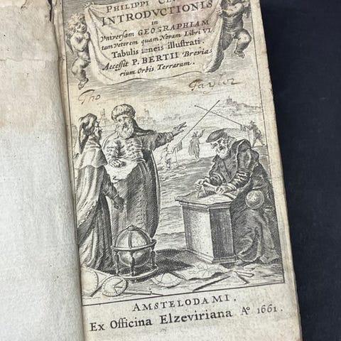 Første tryk af de 29 plancher, inklusive en gravure af en armillarsfære i sort, samt 28 dobbelt-side kort på faner gravureret af Blondeau, hvoraf 4 er store foldede: