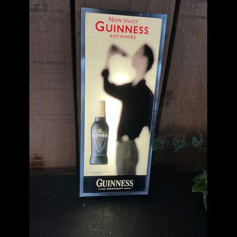 Originalt Guinness lysende skilt, officielt, ideelt til indretning af pub, bar eller samling af reklamegenstande (breweriana).