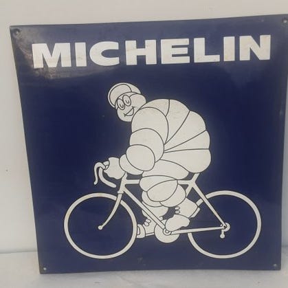 Denne Michelin-racerbil med Bibendum er i god stand og er et sjovt objekt for samleren.