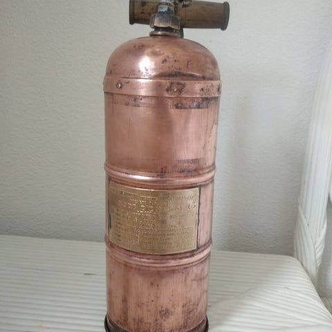 Gammelt industrielt stålreservoir med en manometer i messing signeret A. Bardeau – Courbevoie (Frankrig), dateret fra 1930’erne til 1940’erne. Brugt oprindeligt til håndtering af tryk (luft eller damp) i en industriel eller teknisk sammenhæng. Hele enheden præsenterer en smuk oprindelig patina, med sine ventiler, en mekanisk fjeder og en gradueret skala, som stadig er læsbar. Autentisk objekt med stærk vintage industriel karakter, ideelt til samling, loftindretning eller projekt inden for industriel design.