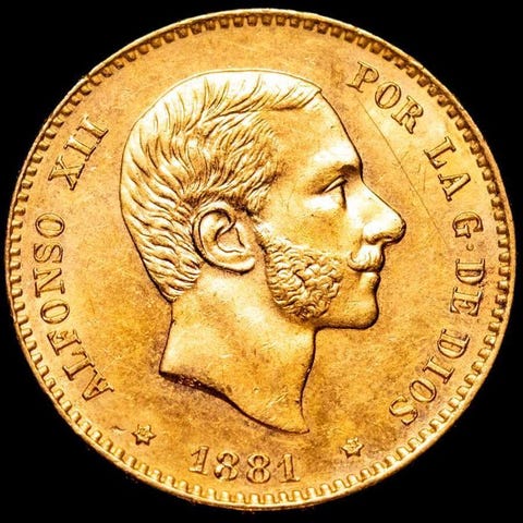 Indsat i Madrid, møntprægestation P.J. År 1781.