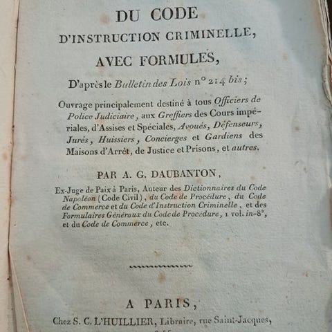 Pietro Mantegazza’s Legislazione Criminale nel Regno d'Italia, første udgave fra 1814, 1. udgave, indbundet i paperback, 140 sider, 22 x 14 cm, udgivet i Milano af Maspero e Buocher, på italiensk. Klik på den blå "gå til varen" knap, for at købe eller byde på denne vare. Den samlede pris vil blive vist inden du afgiver dit bud.