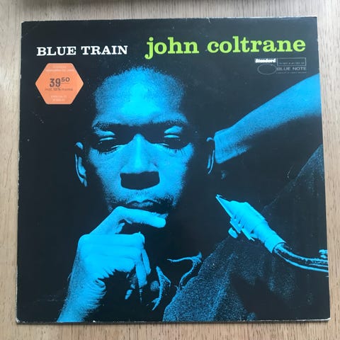Live At Birdland af John Coltrane. Original første promotionsudgave med hvide labels. Denne pressning er sjælden, fordi de aldrig blev solgt i detailbutikker, men blev givet af firmaet til nogle få personer til promoveringsformål, primært til musikjournalister og til brug i radiostationer.