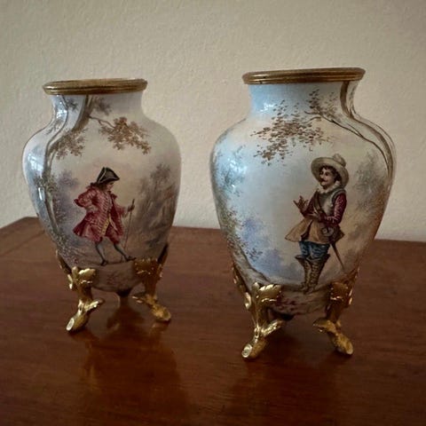 Vasen er udstyret med højtkvalitets forgyldte bronzefæstede rammer både ved kanten og foden. Overkanten er rigeligt ciselert med acanthusblade og mascarons. Bunden hviler på fire skulpturelle støttepunkter og flankeres af fint modellerede putti (engle). Kvaliteten af bronzearbejdet afspejler det høje niveau af fransk håndværkskunst fra denne