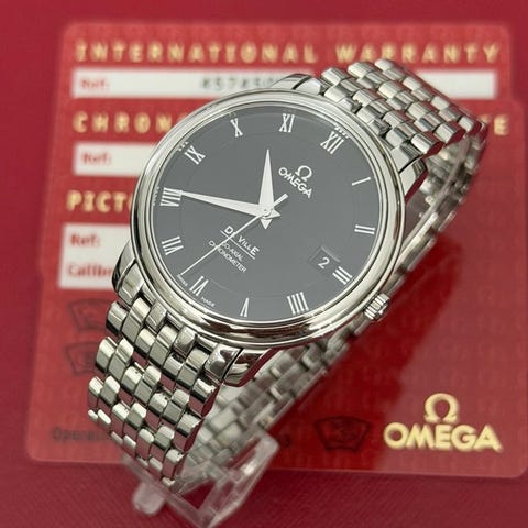 Omega De Ville Co-Axial 41, reference 422.13.41.52.04.001, stål kasse på 41 mm, hvid urværk, safirglas og Omega Co-Axial automatisk cal. 3888, sort læderrem, herreur, produceret 2010–2020, i meget god stand med let brugsspor, forsendelse forsikret og inkluderer Omega rejseboks og ægthedscertifikat fra De Horlogemeesters. Klik på den blå "gå til varen" knap, for at købe eller byde på denne vare. Den samlede pris vil blive vist inden du afgiver dit bud.