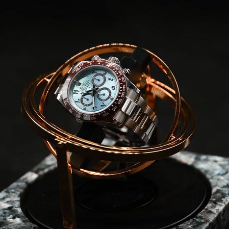 Bagside: Med glas. Med indgraveringer. Med logo. Fastgjort med 6 skruer. Sort PVD titanium.