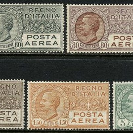 Geografisk oprindelse Italien Kongeriget; Titel Luftpost, komplet serie af 7 værdier, fremragende centrering; Tilstand Ny uden gum; Fra 1927; Katalog Sassone 2A/7. Klik på den blå "gå til varen" knap, for at købe eller byde på denne vare. Den samlede pris vil blive vist inden du afgiver dit bud.