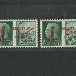 Italien 1944 - Krigspropaganda, 12-val. i par med Brescia-overtryk af type II...