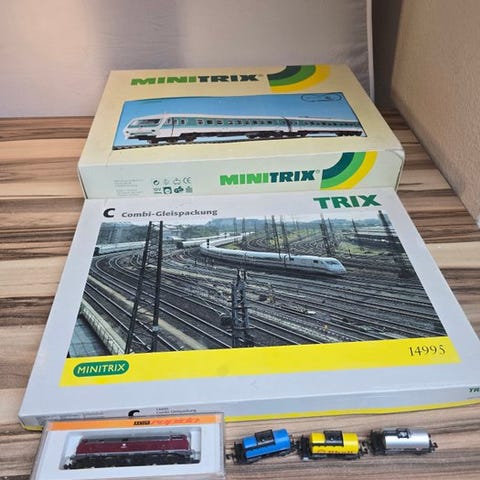Minitrains i skala H0e (1:87) med en sort Krauss damplokomotiv og fire vogne, i god stand og i originalemballage. Klik på den blå "gå til varen" knap, for at købe eller byde på denne vare. Den samlede pris vil blive vist inden du afgiver dit bud.
