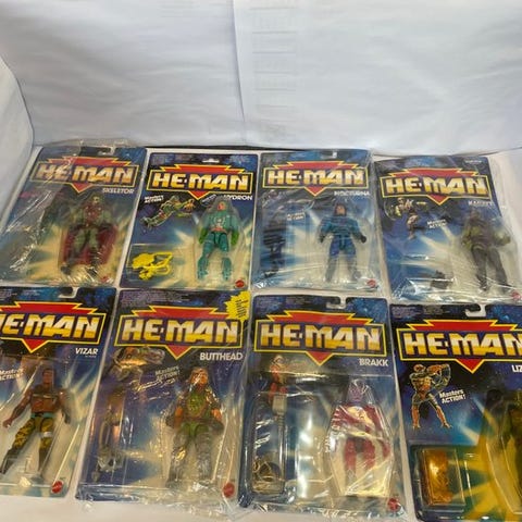 Til salg: en samling på 17 Mattel-figurer, Mego. To af figurerne har deres hoveder og hænder knuste! Alt, hvad der ses på billederne med tilbehør og æsker, sælges.