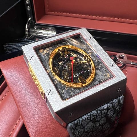 Louis Berset Genève skeletautomatisk herreur, reference L004387, 44 mm rustfrit stål kasse, sort skive, sort læderrem (180–200 mm), ny med fuldt sæt inklusive original boks, papirer og garanti (2025). Klik på den blå "gå til varen" knap, for at købe eller byde på denne vare. Den samlede pris vil blive vist inden du afgiver dit bud.