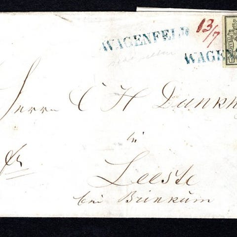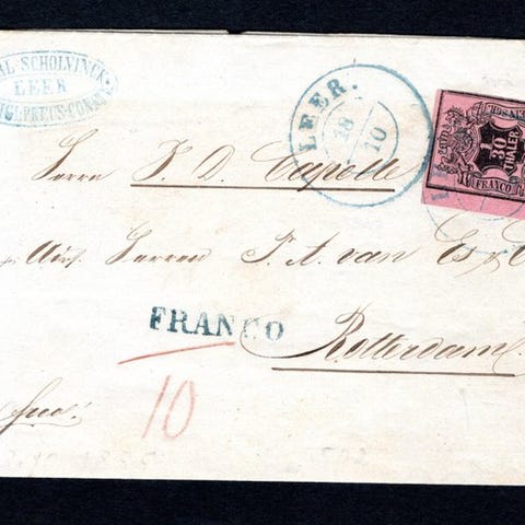 Oprindelse Hannover, titel Brev fra "BREMERHAFEN-11.8." til Frankrig., en brugt genstand fra 1864 med en 1/2 Gr og en vandret firværksstrimmel af 1 Gr på et fuldmarginalt brevkortsbrev til Frankrig, katalogiseret 17 og 23(4). Klik på den blå "gå til varen" knap, for at købe eller byde på denne vare. Den samlede pris vil blive vist inden du afgiver dit bud.