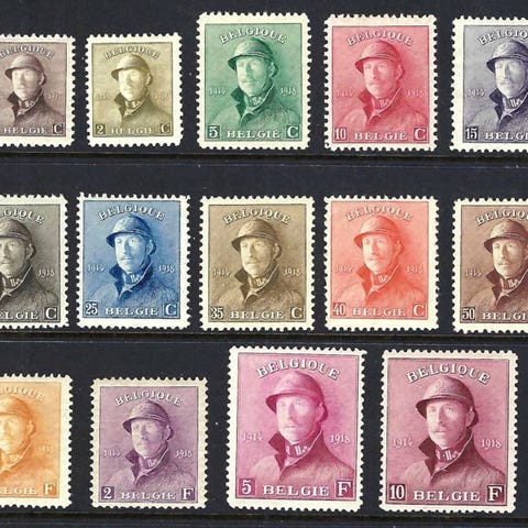 Belgien, Albert I med hjelm – komplet sæt med Kaiser-certifikat, fra 1919, i postfris stand. Klik på den blå "gå til varen" knap, for at købe eller byde på denne vare. Den samlede pris vil blive vist inden du afgiver dit bud.