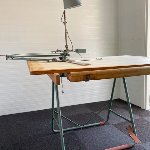 Sjældent og fascinerende professionelt tegnebord fra midten af 1900-tallet, et ægte mesterværk inden for italiensk maskinteknik produceret af den berømte virksomhed "Ing. M. Sacchi - Torino".
