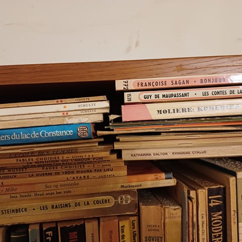 Jeg sælger en pragtfuld samling af franske litteraturbøger, La Bibliothèque, bestående af bindede volumer i hvide æsker, nummererede.