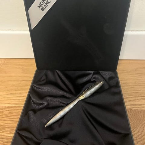 Pennen leveres i sin originale Montblanc-æske, præsenteret i en piano-lakeret guldfinish, ledsaget af et certifikat om ægthed og tilføjer stor værdi for samlerne.