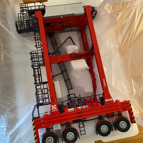 Conrad Art. 2091 - Scale Grove Terrain Hydraulic Crane Mod. GMK 6250, 1:50-skala i resinmodel i god stand, gul og sort, med løftevægt og løftegaffel inkluderet. Klik på den blå "gå til varen" knap, for at købe eller byde på denne vare. Den samlede pris vil blive vist inden du afgiver dit bud.