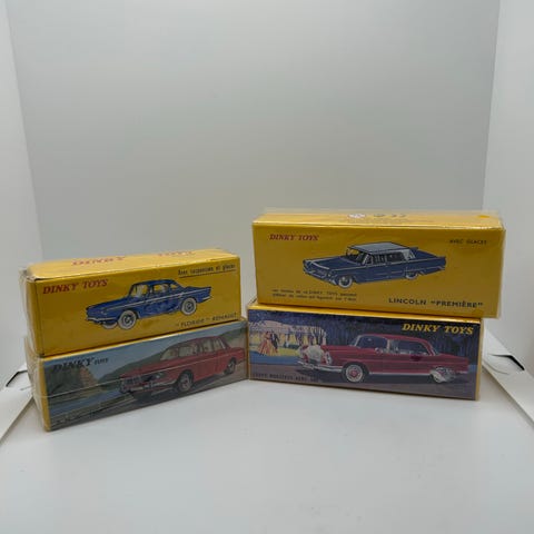 Dinky Toys diecast Austin Atlantic ref. 140A, sæt med tre modeller i blå og sort, med forhandlerboks og original emballage, i ny stand. Klik på den blå "gå til varen" knap, for at købe eller byde på denne vare. Den samlede pris vil blive vist inden du afgiver dit bud.