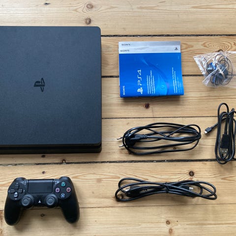 PlayStation 4 Slim med PSVR og spil, fremstillet i 2017, i meget god stand og i fungerende tilstand, med 500 GB lagerplads. Klik på den blå "gå til varen" knap, for at købe eller byde på denne vare. Den samlede pris vil blive vist inden du afgiver dit bud.