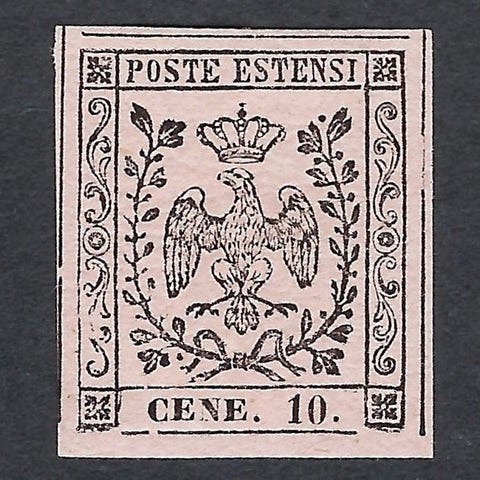 Modena Aquila estense og Corona Ducale 10c rosa fejl " CNET. 10 ", ekstraordinært frimærke med store marginer. Luksus, signeret Colla. Se billedet for en bedre visning.