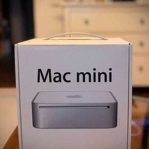 "Mød bedstefaren til nutidens Mac Studio — en kompakt, klassisk Mac mini fra 2004/2005, der lagde grunden til Apples moderne stationære computerserie." Til auktion er en velholdt Apple Mac mini [model A1103] med: