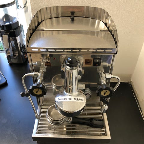 Vendo professionel espressomaskine La San Marco Ducale, perfekt til steder, der ønsker at tilbyde en høj kvalitet espresso med en klassisk og robust stil.