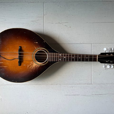 Det drejer sig om en mandolin med buet baggrund (også kendt som napolitansk mandolin). Denne type instrument er kendetegnet ved en buet bagflade, der minder om en skål, og den er ofte forbundet med italiensk traditionel og klassisk musik.