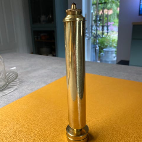 Måler 7 cm. i højden og ca 4,5 cm. i diameter.