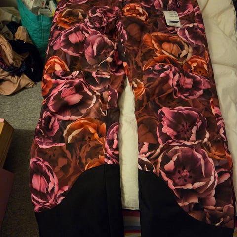 Ulla popkorn smukkeste skibukser med rose motiv str 46 helt nye i emballage og mærke. De er virkelig smukke med mange detaljer og velcro der kan indstilles og med knapper. Kan kun sige de er så fede