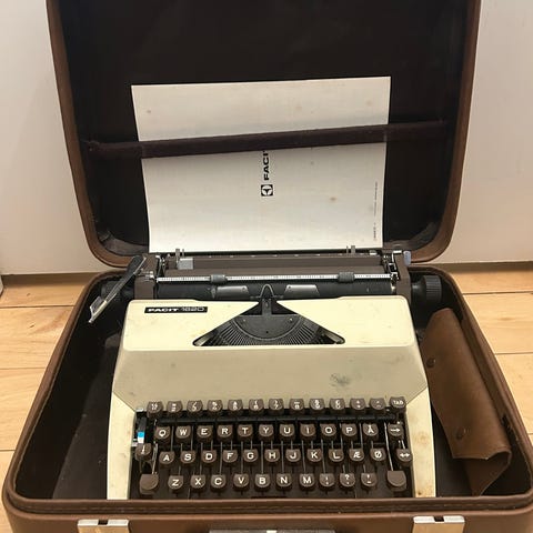 7 stk. med forskellige skrifttyper, er fundet sammen med gamle skrivemaskiner er nok fra 70-erne den sidste der mangler har nok siddet i en maskine. har kun disse hoveder.