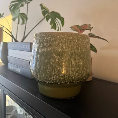 Denne hvide og grønne urtepotte måler 40x18x22 cm