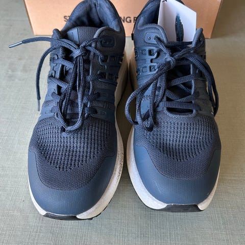 Ride har en stilren overdel laget i en lett nylon mesh kvalitet. Langs begge sidene og over tuppen er den forsterket med termoplast. Det gir skoen ekstra slitestyrke og hindrer at vann og smuss trekker inn i materialet. En flott sko som passer perfekt i byen men som også tåler lette turer i skog og mark.