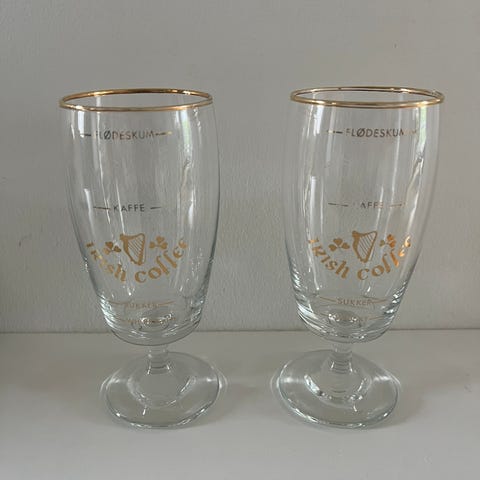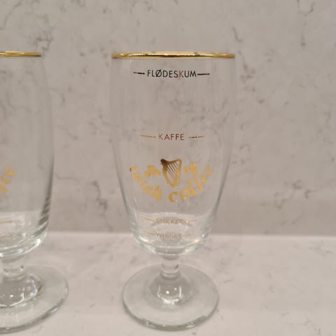 Irish Coffee Glas med guldtryk og tekst - 2. stk - Aldrig brugt