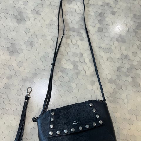 ADAX læder taske til kvinder i grå farve. Tasken har flere rum og lommer, herunder en lynlåslomme og plads til kort. Den har en justerbar skulderrem og en magnetisk lukning. Grå læder.Kan sendes på købers regning. B 17 cm H 11,5 cm.
