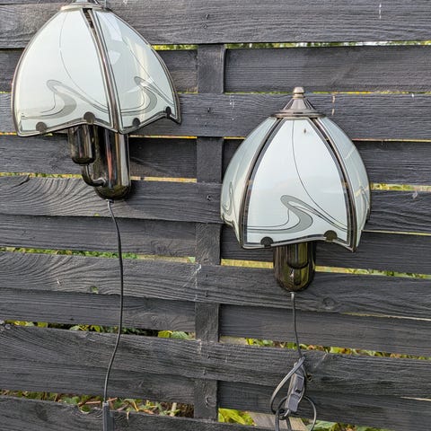Hvid metal Væglampe med Blå Perleskærm.,,,