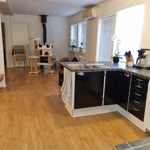 Der er 2 stk. Der er køkken, en stor stue med køkken alrum i enden er der 2 værelser. Der er et badeværelse med bruser hjørne og et skab. Der er en gang med masser af skabe og plads til vaskemaskine og tørretumbler og varmtvandsbeholder. Der er varmepumpe og brændeovn.